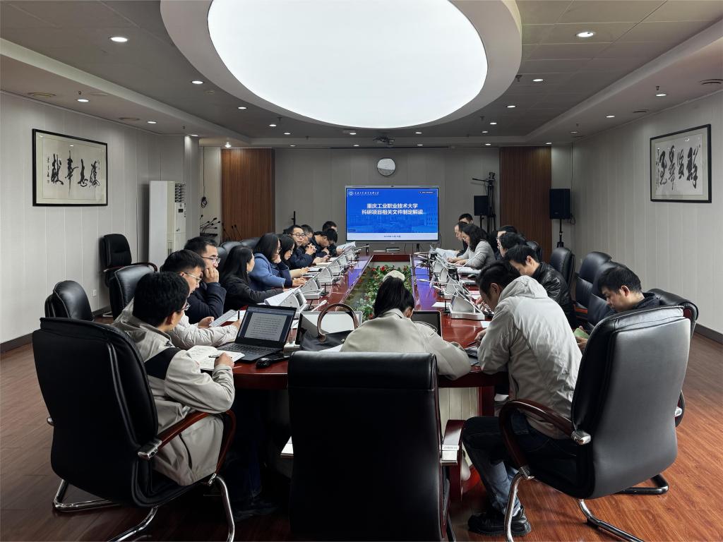 会上,赵宇枫就《重庆工业职业技术大学科研项目(课题)管理办法》(重工大发〔2025〕13号)、《重庆工业职业技术大学科研项目经费管理办法》(重工大发〔2025〕14号)两份新制定制度文件展开深入解读,介绍了新办法的制定背景、指导思想及文件要求,重点就科研项目经费的分类管理、预算编制与调整、经费使用范围、报销审批流程、采购管理、结余经费处理等方面进行了系统讲解。黄琼俭结合近期科研经费报销中存在的共性问题,进行了案例分析和操作指导。