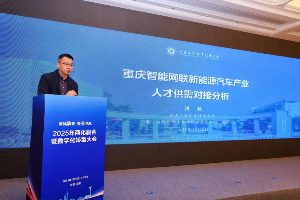 会上,学校电子与物联网工程学院党总支书记、副院长刘毅作了题为《重庆智能网联新能源汽车产业人才供需对接分析》的主题演讲,系统推介了联合体近期发布的《重庆智能网联新能源汽车产业人才供需对接蓝皮书(2025版)》(简称蓝皮书),受到与会各界的高度关注。