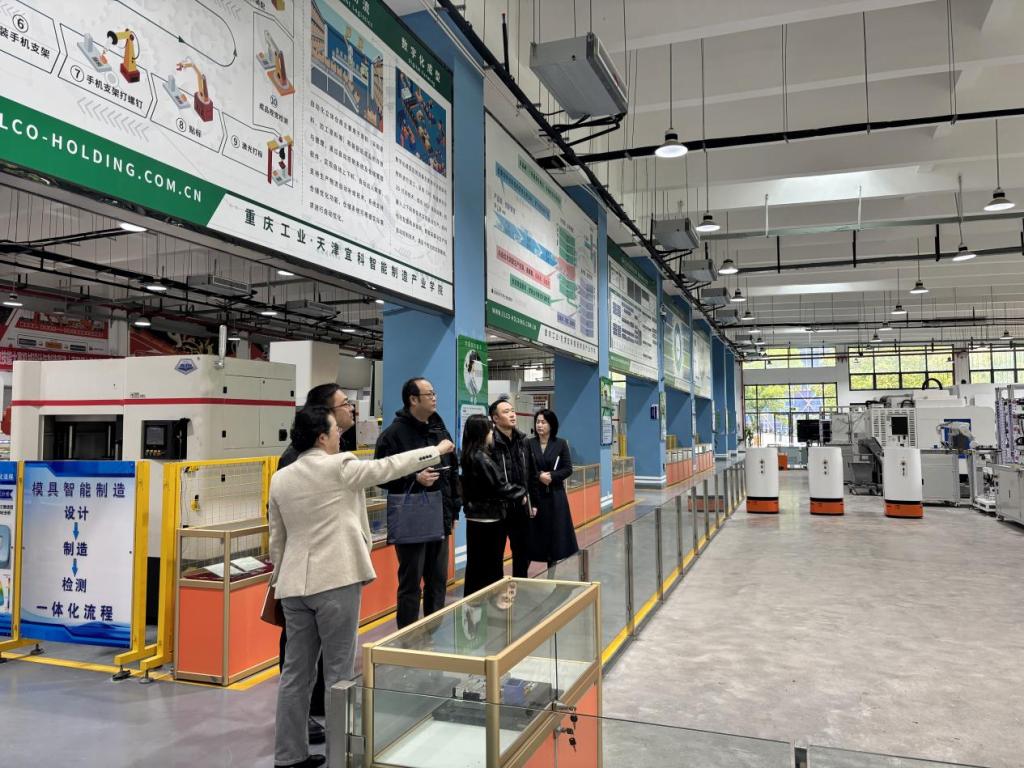 考察组一行在科研处副处长赵宇枫的引导下,先后走进校史馆、智能制造产教融合实训基地、长安产业学院实地参观。在校史馆,考察组详细了解学校的办学历史、发展脉络与办学特色,对学校深耕职业教育、服务区域产业发展的办学底蕴表示认可;在智能制造产教融合实训基地和长安产业学院,考察组近距离察看实训教学设施设备、技能人才培养模式及技术研发成果,对学校高标准的实训教学建设和高素质技术技能人才培养成效给予高度评价。